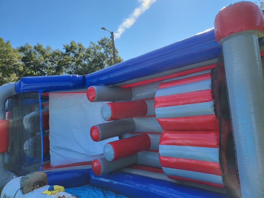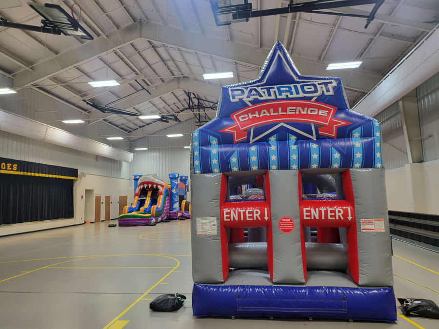 This 40-foot Patriot Challenge is perfect for any age. Big or small; young or old, all will enjoy this obstacle course! Dive in and dodge the obstacles before climbing up a rock wall and sliding down the other side! Watch out! You're not done yet! Before exiting, you will have to dodge and crawl before you hit the finish line! This DRY ONLY unit is still enjoyable on the hottest of days with proper shading!